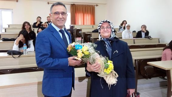 Sınıfta Kayhan'ı tebrik ederek çiçek takdim eden Fakülte Dekanı Prof. Dr. Taha Niyazi Karaca da azmin ve başarının sınırının olmadığını dile getirerek, "Bir insan istediği zaman, azmettiği zaman her yaşta her şeyi başarabilir. Ayşe ablamızın üniversite ideali vardı. Bu ideali burada yaşayacak ve yaşatacak" diye konuştu.