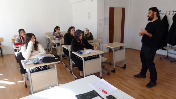 Üniversiteye kaydını yaptıran Kayhan, eğitimin ilk gününde torunu yaşındaki öğrencilerle aynı sırayı paylaştı.