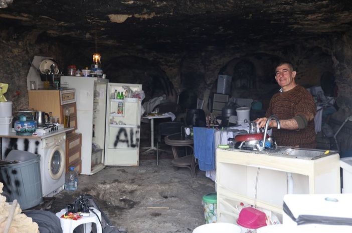 Hatay'da depremde evi yıkılan 55 yaşındaki Ali Bozoğlan 2 yıldır mağarada yaşıyor. Huzuru mağarada bulduğunu belirten Bozoğlan, "Mağara hayatını herkes yaşayamaz ama ben farklı bir insan olduğum için yaşıyorum" dedi. Defne Kaymakamlığı tarafından konteynere yerleştirilmek istendiğini söyleyen Bozoğlan, mağarasını terk etmediğini söyledi