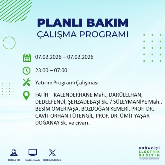 7 Şubat planlı elektrik kesintisi: İstanbul'da elektrikler ne zaman gelecek?