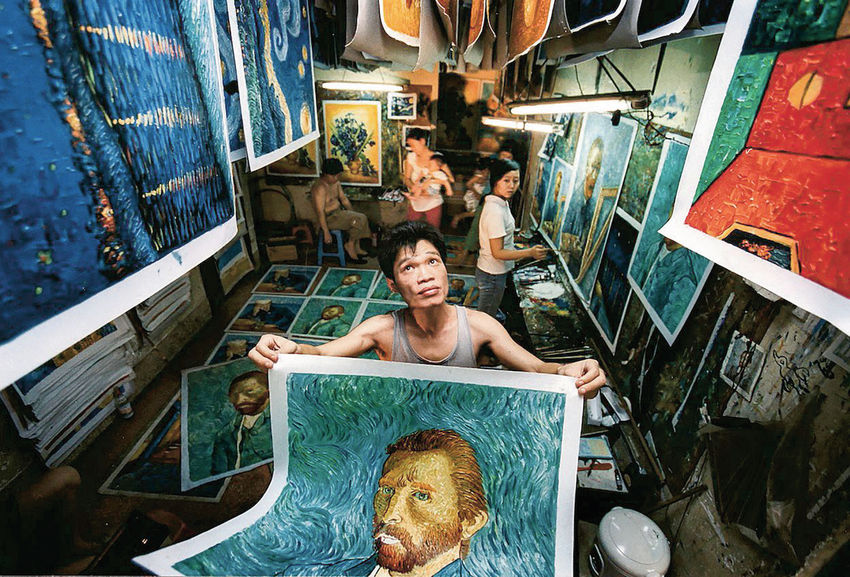Çin’in güneydoğusundaki Guangdong Eyaleti’nin banliyölerinden Shenzhen... Tam ortasında Dafen Köyü ve birkaç kilometrekarede 10 bin ressam... Her yıl 5 milyon tabloyu orijinaline sadık kalarak kopyalıyorlar. İtalyan fotoğrafçı Susetta Bozzi, 40 gün boyunca Dafen’i fotoğraflamış