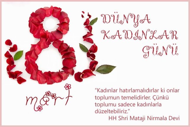 ▹ Peygamberimizin (Cennet annelerin ayakları altındadır) sözünün muhatabı olan tüm dünya kadınlarının 8 Mart Dünya Kadınlar Gününü kutlarım.