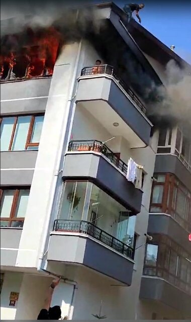 Ankara'da 3 katlı binanın üst katında çıkan yangında, balkonda mahsur kalan K.Ö.D. (8), alevlerden üzerine su döküp, kendisine atılan ıslak bezlerle korunmaya çalıştı. K.Ö.D., adrese sevk edilen itfaiyeciler tarafından kurtarıldı.