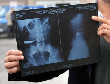 Çevik, büyük alışveriş merkezlerindeki güvenlik kapısından geçişler alarm sesi gelmesi üzerinde güvenlik görevlileri tarafından üzeri sıkı arandıktan sonra ancak içeri alınıyordu. Görevliler bu konuda zaman zaman tartışma yaşayan Çevik, 15 gün önce işyeri rampasından düştü. Bacağı incinen Çevik, İstanbul'daki özel bir hastaneye kaldırıldı. Çevik'in hastanede çekilen röntgeninde 9 yıl önce kavgada kullanılan bıçağın karnında unutulduğu belirlendi.