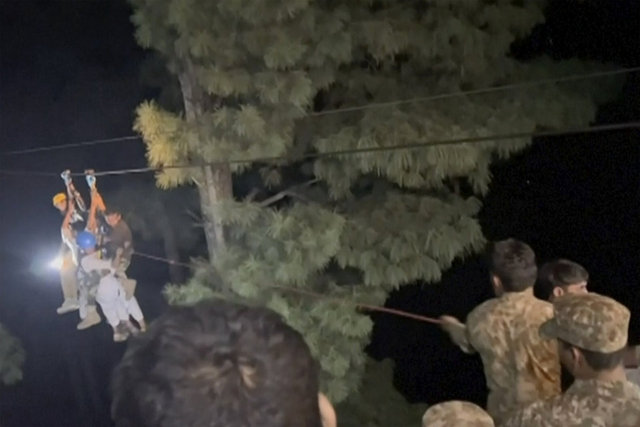 Pakistan'ın Hayber Pahtunhva eyaletinin Battagram bölgesinde okula giderken 914 metre yükseklikteki teleferikte 14 saat mahsur kalan 6'sı çocuk 8 kişinin tamamı kurtarıldı.