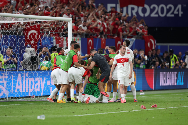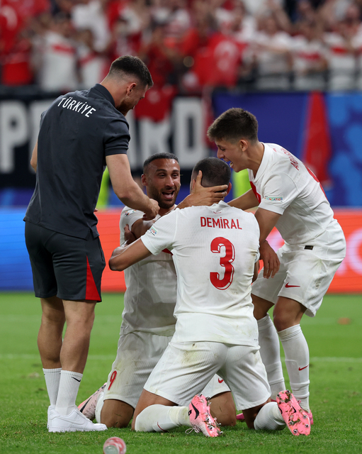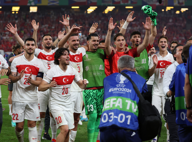 Zor oldu ama başardık... A Milli Futbol Takımımız, EURO 2024'te adını son 16 turuna yazdırdı. F Grubu'ndaki son maçında Çekya ile Hamburg'da karşılaşan Ay-Yıldızlılar, mücadeleden 2-1 galibiyetle ayrılarak tur biletini kaptı. Ay-yıldızlıların gollerini Hakan Çalhanoğlu ve Cenk Tosun atarken, Çekler'in golü Soucek'ten geldi. Milliler, son 16 turunda 2 Temmuz Salı günü Avusturya ile karşılaşacak. İşte Hamburg'da 90 dakikanın ardından objektiflere yansıyanlar