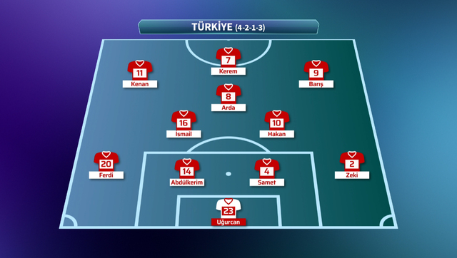 TÜRKİYE'NİN MUHTEMEL 11'İ: Uğurcan, Zeki, Samet, Abdülkerim, Ferdi, İsmail, Hakan, Arda, Barış Alper, Kenan, Kerem