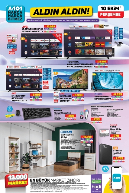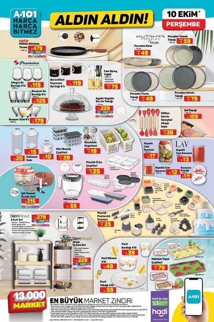 A101, 10 Ekim aktüel kataloğunu yayınladı. Perşembe gününden sonra markete başta küçük ev aletleri olmak üzere; benzinli motosiklet, yürüyüş bandı, ev tekstili, mobilya, beyaz eşya, mutfak gereçleri, teknolojik aletler geliyor. İşte, A101, 10 Ekim 2024 aktüel kataloğu...