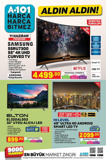 A101 11 Haziran 2020 Aktüel ürünler kataloğu, indirimli fiyatlardan faydalanmak isteyenler tarafından araştırılıyor. A101 indirimli ürünlerde öne çıkanlar ise; TSamsung 4K Curved TV, Samsung A2 Core, Su arıtma cihazı, SEG Çamaşır ve Bulaşık makinesi, Güral Porselen 85 parça yemek takımı, Tatil ürünleri ve Gıda ürünler... İşte 11 Haziran A101 haftanın indirimli ürünler listesi...