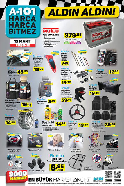 A101 12 Mart 2020 Aktüel ürünler kataloğu yayınlandı. A101'de bu hafta birçok teknoloji, araç sistemler, gıda ve ev araç gereç ürünlerinden indirimli fiyatlar göze çarpıyor. A101 12 Mart kataloğunda kampanyalı ürünler fırsatlarla raflardaki yerlerini alacak.. İşte A101 12 Mart 2020 aktüel ürünler kataloğu...