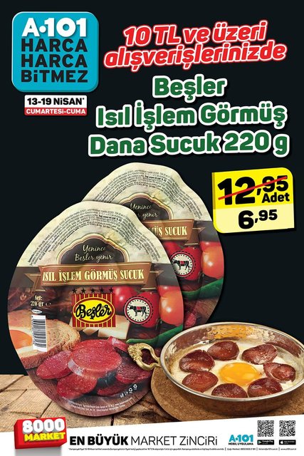 10 TL ve üzeri alışverişinizde Beşler Isılİşlem Görmüş dana sucuk 6,95 TL
