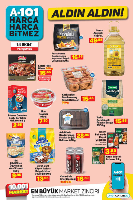 A101 marketlerde 14 Ekim Perşembe gününden itibaren satışa sunulacak fırsat ürünleri belli oldu. A101 Aktüel ürünler kataloğuna göre 14 Ekim Perşembe gününden itibaren araba aksesuarından mutfak malzemelerine, gıdadan elektroniğe, küçük ev aletlerinden televizyona kadar pek çok ürün indirimli fiyatlarla raflardaki yerini alacak. İşte vatandaşlar tarafından merak edilen 14 Ekim Perşembe A101 Aldın Aldın indirimli ürünler listesi