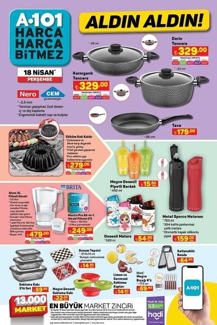 A101 18 Nisan Perşembe 'Aldın Aldın' aktüel kataloğu yayınlandı. Bu hafta A101'e scooter, beyaz eşya, televizyon, mutfak gereçleri, koltuk, katlanabilir yatak gibi birçok ürün geliyor. İşte, 18 Nisan 2024 A101 'Aldın Aldın' kataloğu ve indirimli ürünler listesi...