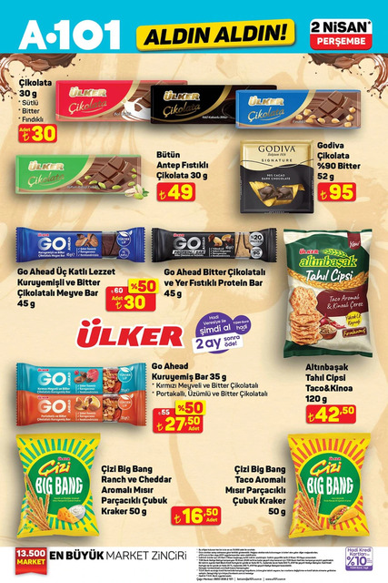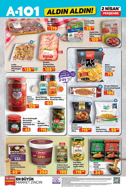A101 marketin 2 Nisan aktüel kataloğu yayınlandı. Bu Perşembe günü A101 marketlerde teknolojik aletlerden beyaz eşyaya, evcil hayvan ürünlerinden mutfak gereçlerine, çocuk oyuncaklarından yatak odası eşyalarına, balıkçılık malzemelerinden temel gıda ürünlerine, hırdavat malzemelerinden elektronik eşyalara kadar birçok ürün alışverişseverlerin satışına sunulacak. İşte A101 2 Nisan 2026 Aldın Aldın aktüel broşürü...