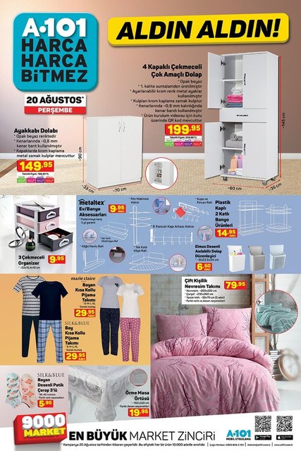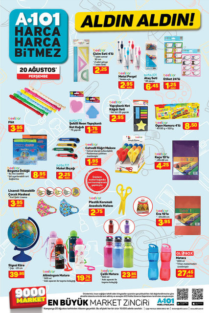 A101 20 Ağustos 2020 aktüel ürünler kataloğu çıkıyor. A101'de bu hafta Okul kırtasiye ürünleri, teknolojik aletler, ev araç gereçleri, gıda ürünlerinde indirimli fiyatlar göze çarpıyor. A101 20 Ağustos kataloğunda kampanyalı ürünler fırsatlarla yarın raflardaki yerlerini aldı... İşte A101 20 Ağustos kataloğu...