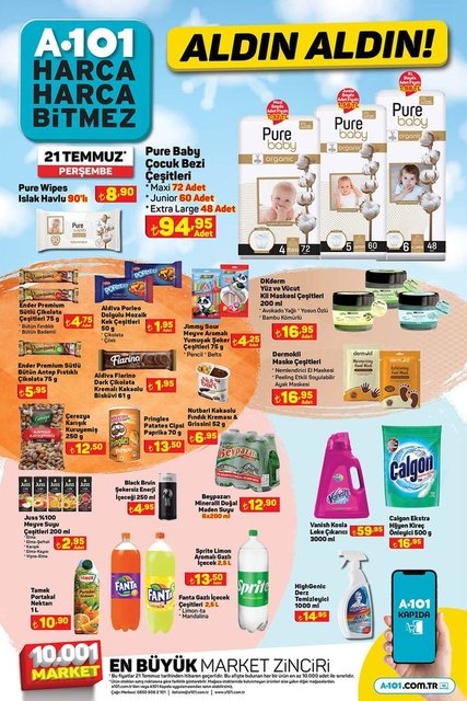 Alışverişseverler tarafından merakla beklenen A101 aktüel ürünler kataloğu yayınlandı. Bilindiği gibi A101 her perşembe aktüel indirimli ürünlerini satışa sunuyor. Bu hafta bebek bezinden, atıştırmalıklara, kamp sandalyesinden, yataklı salıncağa, tava setinden, bisikletlere, fırından, vantilatöre, beyaz eşyadan, android televizyonlara daha birçok indirimli ürün raflardaki yerini alacak. İşte 21 Temmuz Perşembe aldın aldın ürünleri...