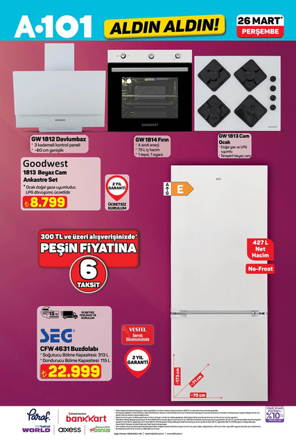 A101 26 Mart aktüel kataloğu yayınlandı. Bu hafta Perşembe günü A101 marketlerde beyaz eşyadan teknolojik aletlere, motosikletten mutfak gereçlerine, elektronik aletlerden ev eşyalarına, temizlik ürünlerinden çocuk oyuncaklarına, temel gıda yemeklerinden yatak odası eşyalarına kadar birçok ürün satışta olacak. İşte A101 26 Mart Aldın Aldın broşürü...
