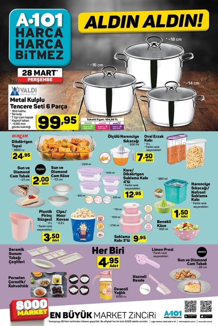 A101 28 Mart 2019 aktüel ürünleri bu hafta satışa çıkacak. Fırsat takipçileri Toshıba Led tv almak için bekliyorlar. A101 28 Mart 2019 aktüel ürünlerinde elektronikten gıdaya birçok kategoride indirimler var. İşte, A101 28 Mart aktüel ürünler kataloğu...