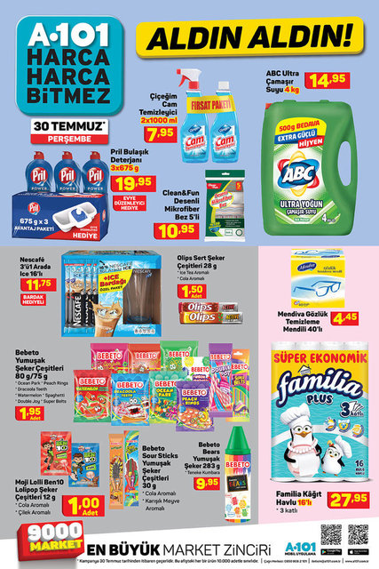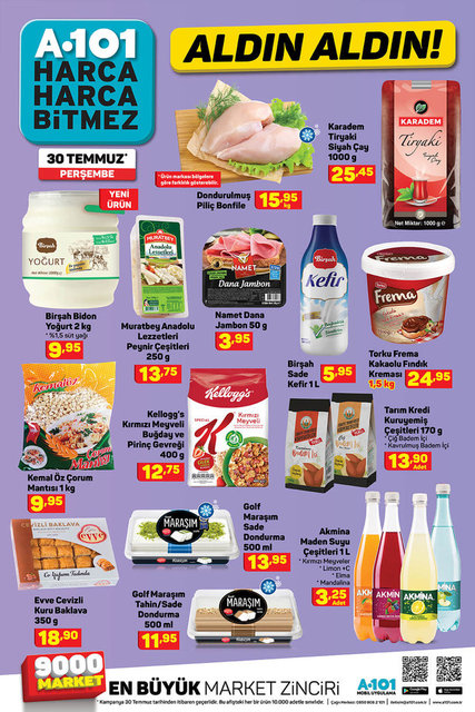 A101 30 Temmuz 2020 aktüel ürünler kataloğu çıkıyor. A101'de bu hafta Büyükbaş 1/7 hisse, Samsung 4K UHD Curved TV, Honor 8S cep telefonu, 26 jant bisiklet, Akülü araba, temizlik ürünleri ve gıda ürünlerinde indirimli fiyatlar göze çarpıyor. İşte A101 30 Temmuz 2020 aktüel ürünler kataloğu...