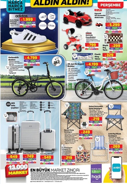 Haftanın merakla beklenen A101 aktüel ürünler kataloğu belli oldu. A101 5 Eylül aktüel ürünlerde dikey süpürge, kahve makinesi, katlanabilir bisiklet, kamp sandalyesi bulunuyor. İhtiyaçlarına yönelik alışveriş yapmak isteyenler fiyat araştırması yapıyor. Bugünden itibaren dikey Süpürge 1.299 TL, Toz Torbasız Süpürge 2.499 TL, Bluetooth Kulaklık 999 TL'den satışa çıktı. İşte A101 5 Eylül 2024 Perşembe aktüel ürünler kataloğu tamamı