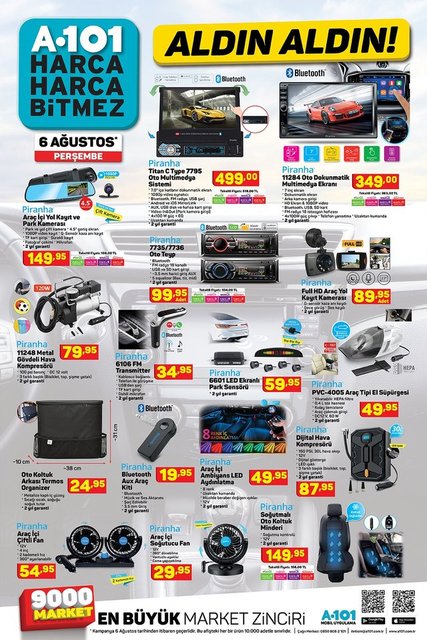 A101 6 Ağustos 2020 aktüel kataloğu çıkıyor. A101'de bu hafta HI-LEVEL Ultra HD LED TV, Sunny el mikseri, SEG buzdolabı, SEG çamaşır makinesi, Piranha araç sistemleri, Piranha akıllı drone, Havzulu toplu kaydırak, Lotus granit tencere ve tava, Temizlik ve gıda ürünlerinde indirimli fiyatlar göze çarpıyor. A101 6 Ağustos kataloğunda kampanyalı ürünler fırsatlarla yarın raflardaki yerlerini alacak... İşte A101 6 Ağustos indirimli ürünler listesi...