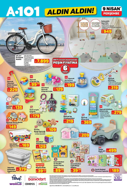 A101 marketin 9 Nisan Aldın Aldın aktüel kataloğu yayınlandı. Bu Perşembe günü tüm A101 marketlerde teknolojik aletlerden kişisel bakım ürünlerine, beyaz eşyadan mutfak gereçlerine, bebek ürünlerinden çocuk oyuncaklarına, elektronik eşyalardan bahçe ekipmanlarına kadar birçok çeşitli ürün alışverişseverlerle buluşacak. İşte A101 9 Nisan 2026 aktüel kataloğu...