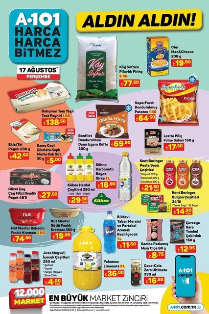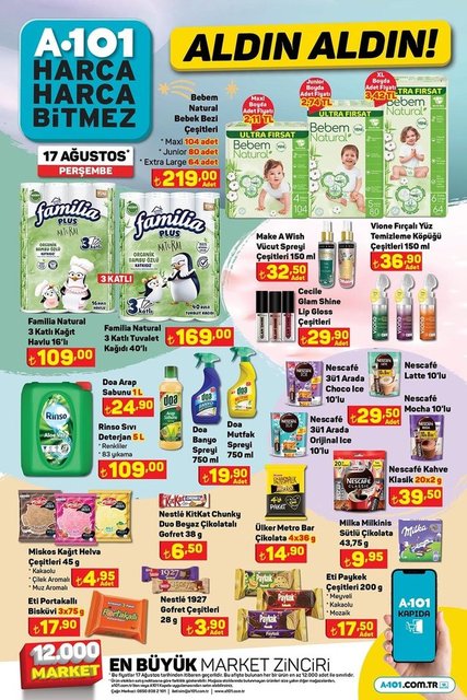 17 Ağustos Perşembe A101 aktüel ürünler kataloğunda onlarca ürün indirimli fiyatları ile alıcılarını bekliyor. Alışveriş takipçileri için A101 aktüel ürünler kataloğunu haberimizde derledik. İşte beyaz eşyalardan, teknolojik ürünlere, giysi çeşitlerinden, gıda ürünlerine A101'de haftanın fırsatları ile fiyat listesi...