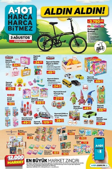 A101 aktüel 3 Ağustos 2023 Perşembe Aldın Aldın kataloğu yayımlandı. A101'de bu hafta yine sınırlı sayıda birbirinden farklı indirimli ürün müşterisiyle buluşacak. A101'de bu perşembe elektrikli moped, dik süpürge, oyuncak gibi pek çok ürün raflardaki yerini alacak. İşte, 3 Ağustos 2023 yeni A101 aktüel ürünleri fiyat listesi...