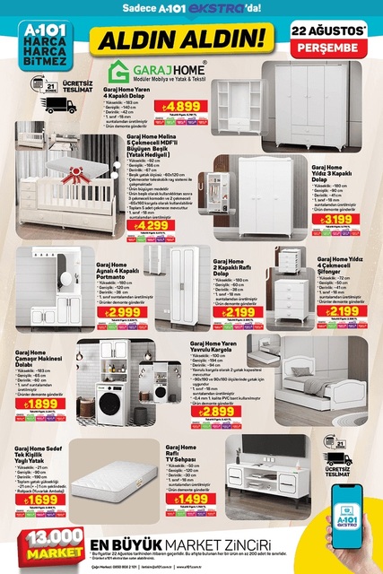 A101 aktüel 22 Ağustos 2024 kataloğu alışverişseverlerle buluştu. Böylece bu haftanın A101 indirimli ürünleri belli oldu. Teknolojik aletler, küçük ev aletleri, beyaz eşya başta olmak üzere birçok ürün uygun fiyattan raflara dizildi. Öte yandan A101’e çekme karavan elektrikli motorlu bisiklet geldi. 3.60 metrelik karavan, 9 taksit imkanıyla satışa sunuldu. Peki, A101’de bu hafta neler var? İşte, 22 Ağustos 2024 A101 aktüel ürünler kataloğu…