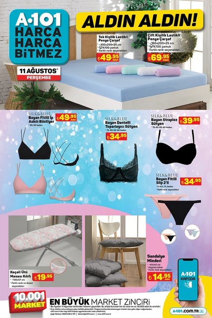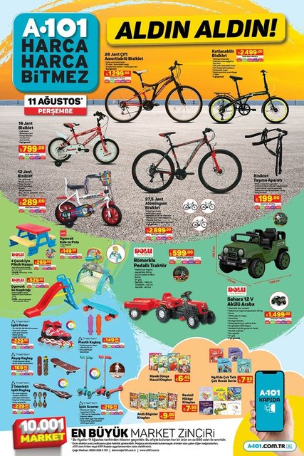 A101 indirimli ürünler kataloğunda bu hafta; Samba Deluxe 4,95m Kamaralı Fiber tekneden, elektirikli bisiklete, smart TV'lerden, akıllı telefonlara, beyaz eşyalardan, küçük ev eşyalarına, akülü arabalardan, resimli hikaya kitaplarına, spor aletlerinden, süt ve süt ürünlerine, temizlik ürünlerinden, kişisel bakım ürünlerine, atıştırmalıklardan, gazlı - gazsız içeceklere, daha birçok ürün raflardaki yerini alacak. İşte 11 Ağustos 2022 aktüel ürünler listesi...