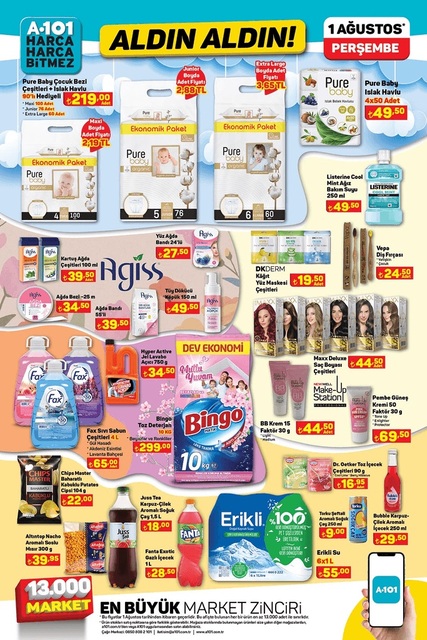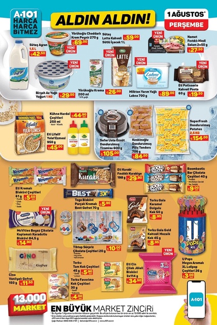 A101 1 Ağustos 2024 Perşembe günü sınırlı sayıda indirimli ürünleri satışa sunuyor. 1 Ağustos A101 ürünler kataloğunda televizyon, buzdolabı gibi indirimli birçok ürün yer alıyor. Bu hafta A101 kataloğunda benzinli moped öne çıkıyor. İşte, Aldın Aldın fırsatları ile A101 aktüel ürünler kataloğu fiyat listesi...