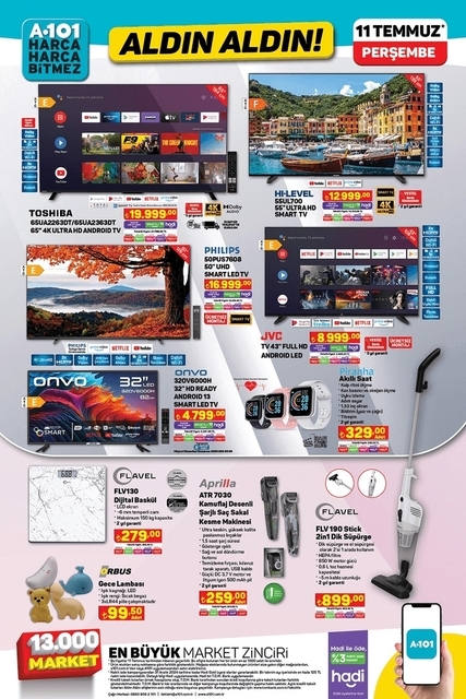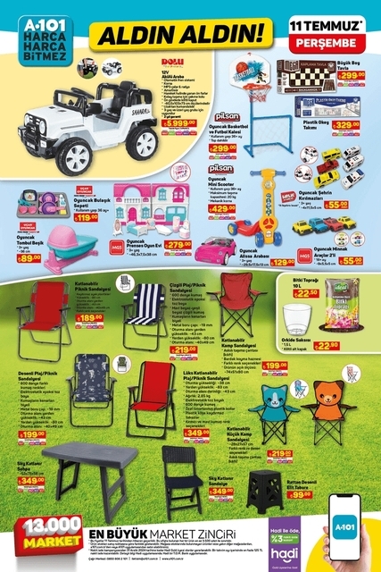 A101 aktüel ürünler kataloğunda bu hafta yok yok. 11 Temmuz Perşembe gününden itibaren Aldın Aldın sloganıyla indirimli ürünler listesini duyuran markette beyaz eşya, küçük ev aletleri, televizyon, kamp sandalyesi dikkat çekiyor. İhtiyaçlar doğrultusunda alışveriş yapmak isteyenler A101 aktüel ürünlerde neler var merak ediyor. İşte A101 aktüel ürünler kataloğu tamamı