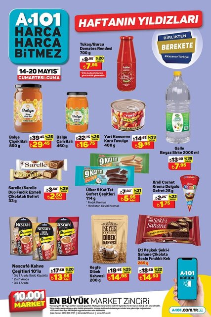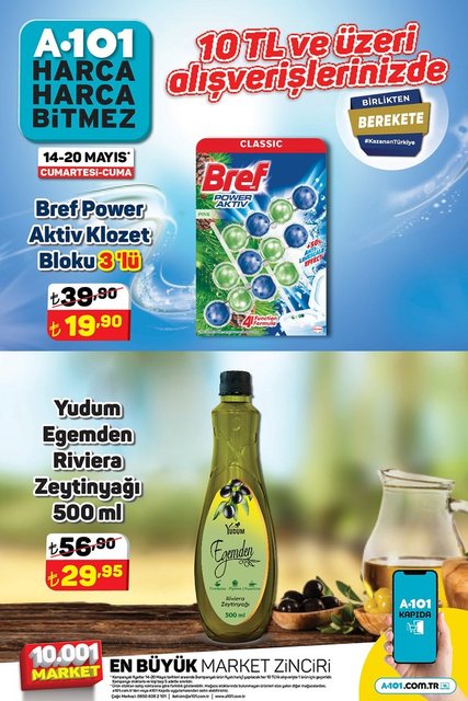 A101 aktüel ürünler 14-20 Mayıs kataloğunda yer alan indirimli ürünler alışveriş severler tarafından araştırılıyor. A101 indirimli ürünler listesi yer alan; yoğurt, pasta sosu, kabuklu fıstık, USB bellek, kağıt havlu, hijyenik ped çeşitleri, şampuan çeşitleri, çiçek balı, beyaz sirke, kahve çeşitleri, piliç baget, yumurta, klozet bloku ve zeytinyağı gibi ürünleri 14 ile 20 Mayıs günleri arasında satışta olacak. İşte, 14-20 Mayıs A101 Aktüel ürünler kataloğu…