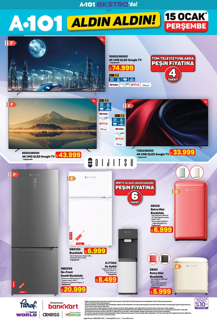 A101'de 15 Ocak 2026 Perşembe gününe özel ürünler dikkat çekiyor. A101 marketlerde bu perşembe; bebek ürünleri, televizyon, dikey süpürge, pijama takımları gibi ürünler gündeme geldi. Peki, bu hafta A101 marketlerde neler var? 15 Ocak 2026 A101 kataloğunda hangi ürünler indirime girdi?