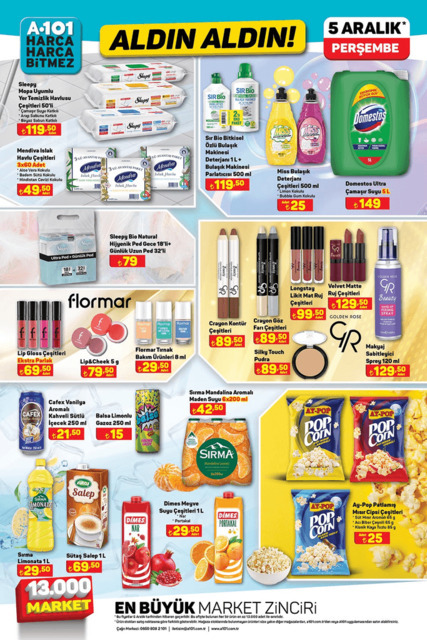 Yeni haftanın A101 aktüel ürünler kataloğu yayınlandı. 5 Aralık'tan itibaren geçerli olacak indirimli ürünlerde ütü, kahve makinesi, stand mikser, elektrikli moped, benzinli motosiklet, kadın/erkek pijama takımı, bölmeli organizer, çeşitli oyuncaklar uygun fiyatla raflarda yerini alacak. İşte, 5 Aralık 2024 A101 aktüel ürünlerin tamamı