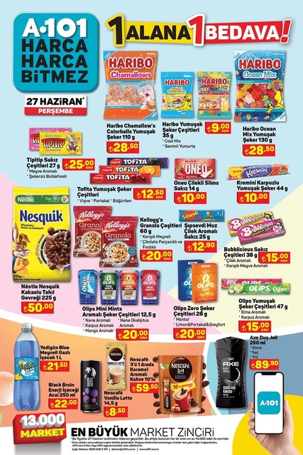 A101 aktüel ürünler kataloğu 27 Haziran Perşembe indirim listesi yayınlandı. Bu hafta televizyon, buzdolabı, çamaşır makinesi, benzinli motosiklet indirimli ürünler arasında yer aldı. İhtiyaçları doğrultusunda alışveriş yapmak isteyen vatandaşlar A101 aktüel ürünlerde neler var sorusuna yanıt aranıyor. İşte a101 indirim kataloğu
