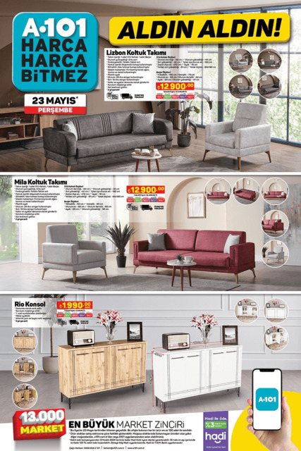 A101 Aldın Aldın katalog listesinde bu hafta yeni indirimler yer alıyor. Koltuk takımından, elektronik aletlere varıncaya kadar yüzlerce çeşit üründe indirim bulunuyor. Her hafta Perşembe A101 aktüel ürünler kataloğu yenileniyor. Peki A101 aktüel kataloğunda hangi ürünler indirimli? İşte A101 aktüel ürünler kataloğu 23 Mayıs 2024