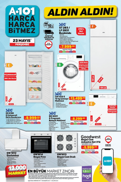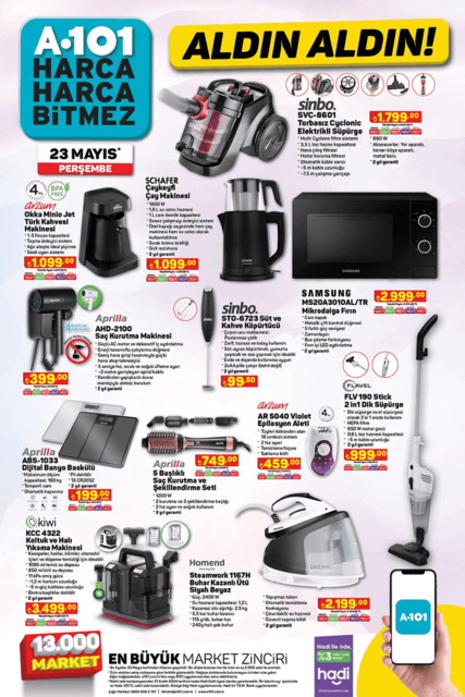 Aldın Aldın sloganıyla A101 aktüel ürünler kataloğu yayınlandı. Bu hafta a101 indirimlerinde elektrikli moped, akıllı bileklik, derin dondurucu, bulaşık makinesi, çamaşır makinesi, davlumbaz yer alıyor. Ev ihtiyaçlarında eksiklikleri olanlar için kazanlı ütü, mikrodalga fırın, dik süpürge indirimli olacak. İşte 23 Mayıs 2024 A101 aktüel ürünler kataloğunda bu haftaki indirim listesi