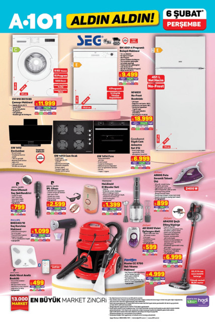 A101 aktüel ürünler kataloğunda bu hafta elektrikli moped indirimde olacak. Aldın aldın sloganıyla ürünleri yayınlayan a101'de televizyon, buzdolabı, bulaşık makinesi, blender seti yer alıyor. Tekstil ve giyim ürünleri arasında ise hem kadın hem erkekler için farklı seçenekler yer alıyor. İşte A101 6 Şubat 2025 aktüel ürünler kataloğu