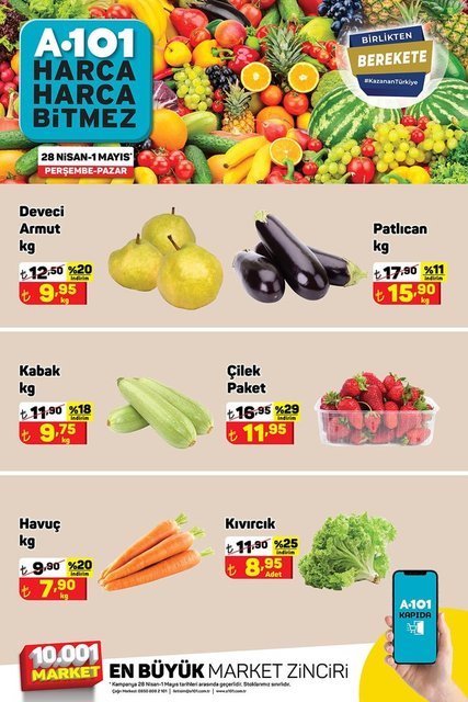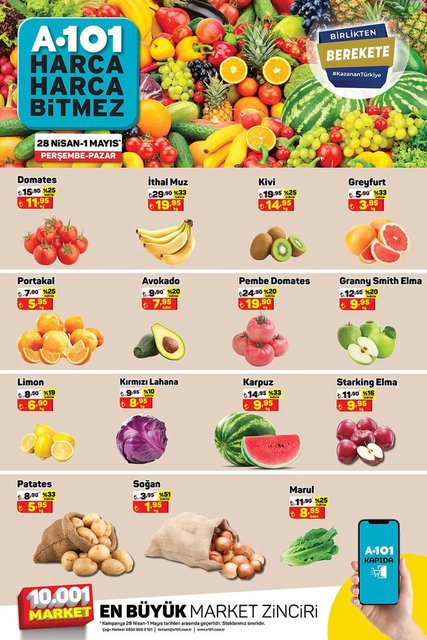 A101 aktüel ürünler kataloğunda yer alan indirimli ürünler, alışveriş severler tarafından yakından takip ediliyor. Her hafta olduğu gibi bu hafta da yayınlanan 30 Nisan - 6 Mayıs A101 indirimli ürünler listesinde yer alan; kangal sucuk, kuru maya, piliç döner, dondurulmuş lahmacun, bohça mantı, gezen tavuk yumurtası, tahıllı bebek bisküvisi ve çikolata çeşitlerine kadar onlarca ürün yarın satışa sunulacak. İşte, 30 Nisan - 6 Mayıs A101 Aktüel ürünler kataloğu...