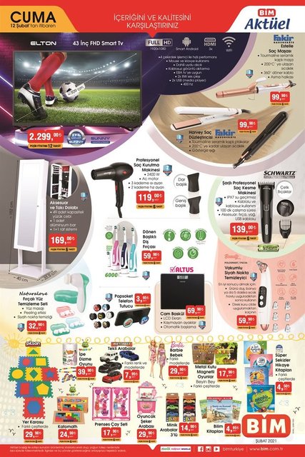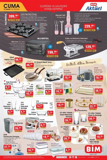 A101 BİM atküel ürünler kataloğu bu hafta için yayınlandı. Her hafta birbirinden farklı ürünlerde indirim yapan A101, BİM market zincirlerinin indirim kataloglarında bu hafta hem teknolojik aletler hem de mutfak eşyaları ön plana çıkıyor. İşte 11 Şubat A101 ve 12 Şubat BİM aktüel ürünler kataloğu