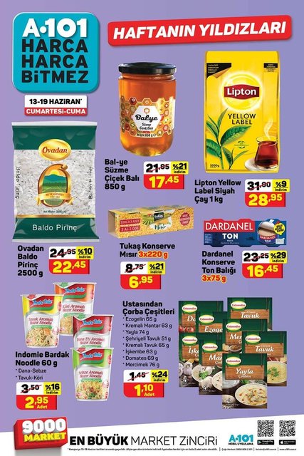 A101 BİM aktüel ürünler kataloğu bu hafta için açıklandı. Her hafta birbirinden farklı ürünlerde indirim yapan A101, BİM market zincirlerinin indirim kataloglarında bu hafta gıda ürünleri öne çıkıyor. İşte 13 Haziran'dan itibaren satışta olan A101 ve 16 Haziran'da satışa çıkacak BİM aktüel ürünler kataloğu