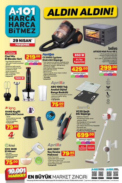 A101 BİM aktüel ürünler kataloğu yayınlandı. Her hafta birbirinden farklı ürünlerde indirim yapan A101, BİM market zincirlerinin indirim kataloglarında bu hafta teknolojik ev aletleri, gıda ürünleri, beyaz eşyalar müşterilerini bekliyor. İşte 30 Nisan'dan itibaren BİM ve 29 Nisan'dan itibaren geçerli A101 aktüel ürünleri