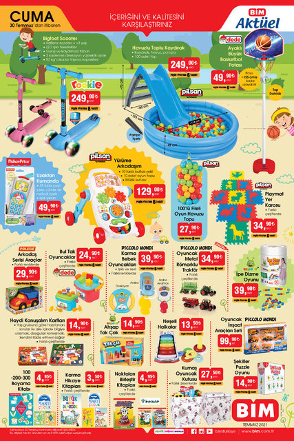 A101 BİM aktüel ürünler kataloğu yayınlandı. Her hafta birbirinden farklı ürünlerde indirim yapan A101 ve BİM market zincirlerinin indirim kataloglarında bu hafta teknolojik ev aletlerinden, yazlık plaj ürünlerine kadar bir çok ürün indirimli fiyatlarla raflardaki yerini aldı. İşte 30 Temmuz'dan itibaren geçerli BİM aktüel ürünler kataloğu ve 29 Temmuz'dan itibaren geçerli A101 aktüel ürünler kataloğu...