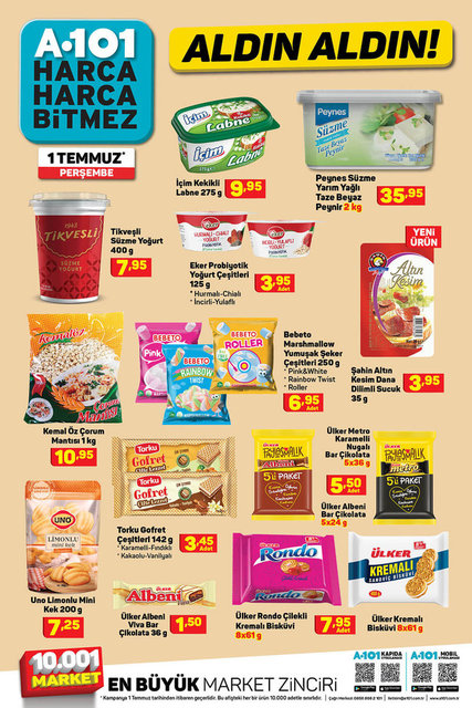 A101 BİM aktüel kataloğu yayınlandı. Her hafta Her hafta birbirinden farklı ürünlerde indirim yapan A101, BİM market zincirlerinin indirim kataloglarında bu hafta kurbanlıklar satışa çıktı. Ayrıca teknolojik ürünler, pratif ev aletleri ve kamp malzemeleri de müşterilerini bekliyor. İşte 1 Temmuz'dan itibaren geçerli A101 aktüel ürünleri ve 29 Haziran'dan itibaren geçerli BİM aktüel ürünler kataloğu