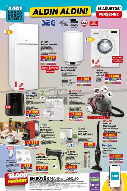 A101 aktüel kataloğu onlarca üründe indirimleri ve beyaz eşya fırsatları gündeme geldi. Alışveriş takipçilerinin merak ettiği A101 aktüel ürünler kataloğunu haberimizde derledik. Peki, 15 Ağustos bu perşembe A101 kataloğunda neler, hangi ürünler indirime girdi? İşte A101'de haftanın fırsatları...