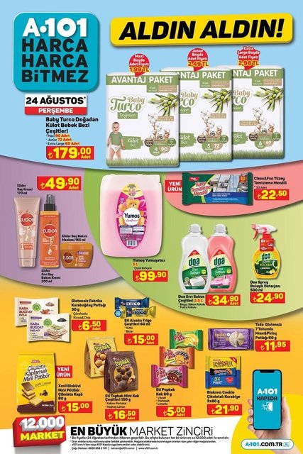 Türkiye'nin en büyük zincir marketlerinden biri olan A101 24 Ağustos Perşembe gününden itibaren onlarca ürünü satışa sunuyor. 24 Ağustos A101 aktüel ürünler kataloğunda yer alan maxi scooter, marka spor ayakkabı, halı çeşitleri ve küçük ev aletleri dikkat çekti. İşte 24 Ağustos Perşembe A101 aktüel ürünler kataloğu indirim listesi...