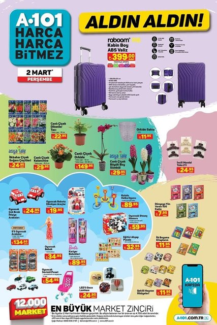 Türkiye'nin en büyük zincir marketlerinden biri olan A!01 yeni indirim kataloğunu yayınlandı. 2 Mart Perşembe A101 aktüel ürünler kataloğunda yer alan; beyaz eşya çeşitleri, küçük ev aletleri, mutfak gereçleri, valiz ve kadife kaymaz saçaklı halıya kadar onlarca ürün indirimli fiyatıyla satışa çıkıyor. İşte, 2 Mart 2023 Perşembe A101 aktüel ürünler kataloğu tam fiyat listesi...