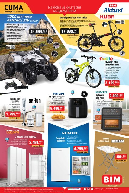 BİM, 10 Mayıs aktüel kataloğu kapsamında benzinli ATV getiriyor. Bunun yanı sıra; mobilya, mutfak aletleri ve çocuk oyuncakları da katalogta yer alan ürünlerden.
