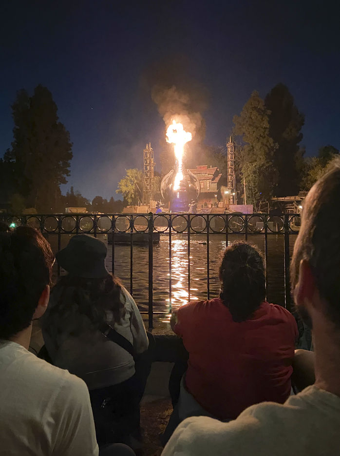 BBC'nin haberine göre, Fantasmic isimli gösteri sırasında "Malefiz" karakterini canlandıran 13 metre boyundaki mekanik ejderha alevler içinde kaldı.